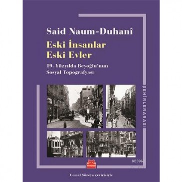 Eski İnsanlar Eski Evler: 19.Yüzyılda Beyoğlu`nun Sosyal Topoğrafyası, Taksim Meydan`ından Tünel`e kadar uzanan dünün Cadde-i Kebir`i üzerine yazılmış,19. Yüzyıl İstanbul`unda ticaret burjuvazisinin yerleşim çevrelerini ele alan değerli bir kaynak. Said Naum-Duhani , bugün bir "taş"tan ibaret olan yapıların ve o mekanların içindeki "insanların"hikayesini kapı kapı dolaşarak birinci elden aktarıyor.Bunu yaparken de bir "kentsel atardamar" olarak tanımladığı İstiklal Caddesi`ni üç farklı güzergahtan dolaşarak Beyoğlu ve çevresindeki batılılaşma dönemi mimarlığının kentsek envanterini çıkarıyor.Cemal Süreyya`nın usta çevirisiyle ve Çelik Gülersoy`un eşine az rastlanır portre yazısı eşliğinde...