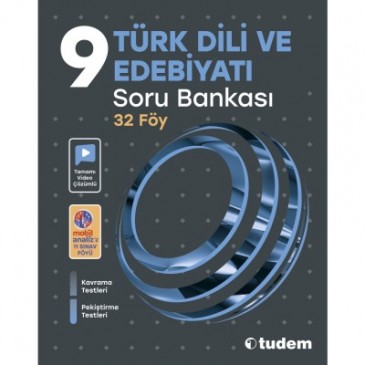 Tudem 9. sınıf Türk Dili ve Edebiyatı Soru Bankası’nda beceri temelli yeni nesil sorularla zenginleştirilmiş ve farklı zorluk düzeylerindeki testlerden oluşan 11’i sınav föyü olmak üzere toplam 32 föy yer almaktadır. Her bir konu föyü, kavrama ve pekiştirme testlerinden oluşmaktadır: Kavrama Testleri’nde konuyu kavratıcı nitelikte kolay/orta zorluk düzeyinde sorular ve bu soruları çözmekte kılavuzluk edecek bilgi, dikkat ve ipucu kutuları;Pekiştirme Testleri’nde kavranılan konuları pekiştirmeye yönelik orta/ileri zorluk düzeyindeki sorular yer almaktadır.Sınav föyleri ise farklı amaçlar doğrultusunda oluşturulmuştur:Ünite Değerlendirme Sınavları, o ünitedeki kazanımları ölçmek amacıyla hazırlanmıştır ve her ünitenin sonunda yer almaktadır.Dönem Değerlendirme Sınavları, birinci ve ikinci dönem kazanımları ile hazırlanmış sorulardan oluşmaktadır ve bu sınavlarla dönem değerlendirmesinin yapılması amaçlanmıştır. Ayrıca testlerin tamamı video çözümlü olup sınav föylerinde mobil analiz özelliği bulunmaktadır.